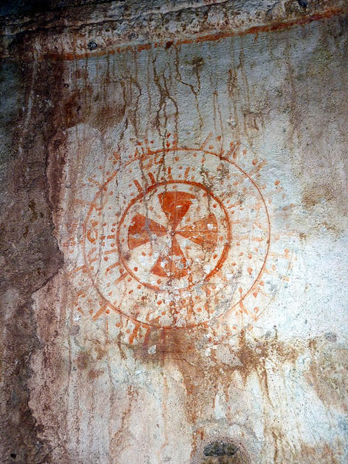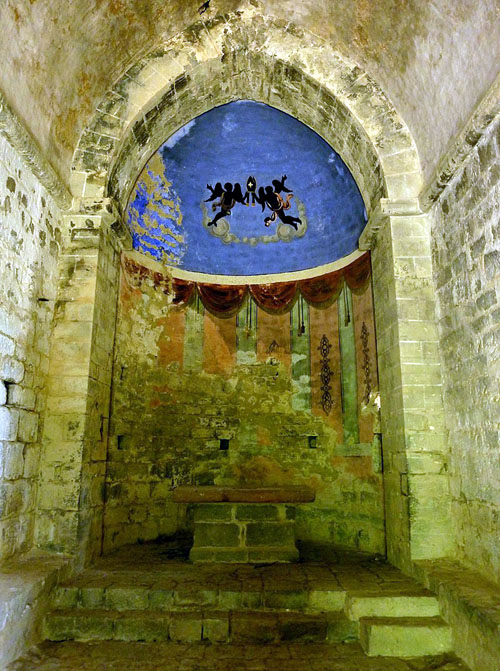 Detall d'una pintura a l'interior de l'església de Sant Joan de Bossols. Segle XIV. Viquipèdia - (Ampliar)