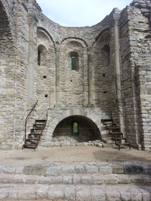 Capçalera de l'església del monestir de Sant Llorenç del Mont. Viquipèdia - (Ampliar)