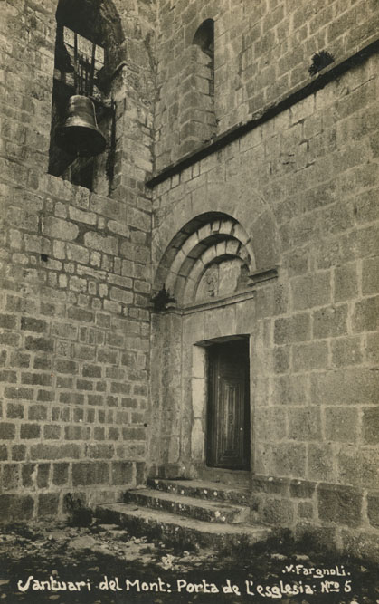 Des de 1222 al monestir de Sous tenia culte la imatge de la Mare de Déu del Mont. La difusió de la devoció impulsà l'abat Bernat, en els anys 1311-1318, a construir l'actual santuari al cim de la muntanya, al qual va ser traslladada. Aquest santuari enfrontà, pel seu control, l'abat amb el bisbe de Girona, i Guillem de Vilamarí. El 1319 s'arribà a un conveni que deixà en mans de l'abat l'administració del santuari, mentre el bisbe hi retenia el dret de visitació, la jurisdicció i un cens anual. ![]() Vista general del santuari de la Mare de Déu del Mont. 1911. Valentí Fargnoli i Annetta. CRDI - Ajuntament de Girona. - (Ampliar)
