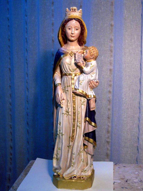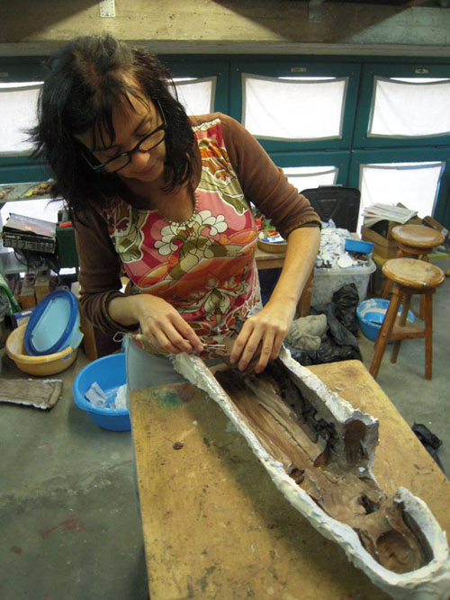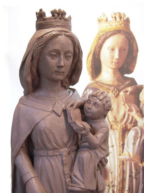 L'escultora Ció Abellí treballant en la rèplica de la Mare de Déu de Creixell. Imatge gentilesa de Ció Abellí. - (Ampliar)