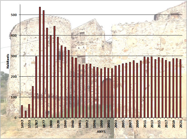 A finals del mes de juny de 1677, durant les campanyes del 1673-1678 de les guerres franco-espanyoles, davant del castell de Vilarnadal, hi hagué enfrontaments entre l'exèrcit espanyol i francès, aquest a les ordres del duc de Noailles. Aquests fets precedeixen l'anomenada batalla del barranc d'Espolla, que es produí el 4 de juliol i que significà una gran desfeta per a les tropes del duc de Moteleon (1). ![]() Evolució demogràfica de Masarac. Les dades dels anys 1497-1553 s'han estimat en base als focs: 1497, 11 focs; 1515, 6 focs; 1553, 12 focs. Les dades del període 1717-1981, corresponen a població de fet; a partir de 1990, població de dret. Dades recents extretes d'Idescat. - (Ampliar) Bibliografia