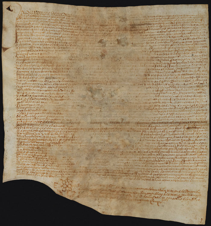 Des del 1990 al 2004 s’han portat a terme treballs d’excavació arqueològica, sota la direcció de la Dra. Enriqueta Pons, del Museu Arqueològic de Catalunya. En tots aquests anys de treball cal destacar la descoberta d’un important conjunt patrimonial que s’estén per una superfície d’uns 8000 m2, tot i que el complex arqueològic en el seu conjunt ocuparia un espai en cap cas inferior a les 5 ha. ![]() Anna de Sagarriga i de Rafart, vídua de Lluís de Sagarriga, senyor del castell de Pontós, confirma l'establiment fet l'any 1492 al prevere Pere Comes i successors d'una casa amb 3 vessanes de terra, a reserva dels seus drets de domini directe i d'una mitgera de forment de cens. Per aquesta confirmació reconeix haver rebut 2 sous en moneda barcelonesa. 10 de setembre de 1590. Biblioteca de Catalunya - (Ampliar) El castell de Pontós.