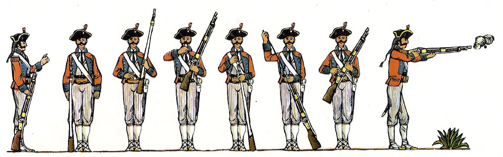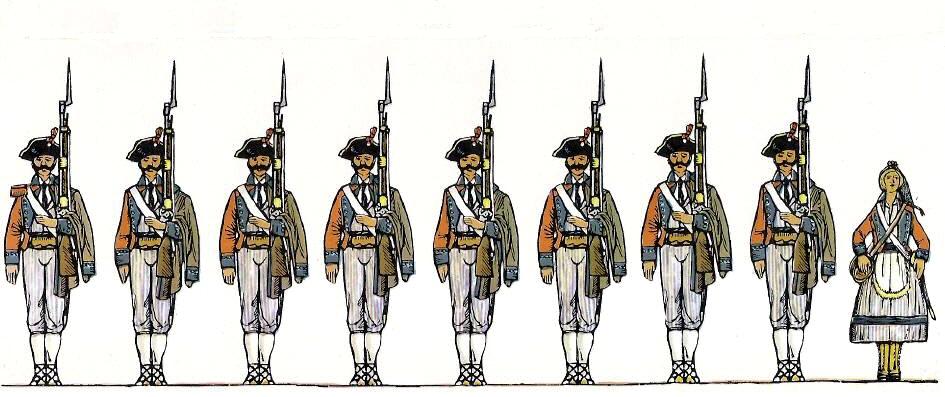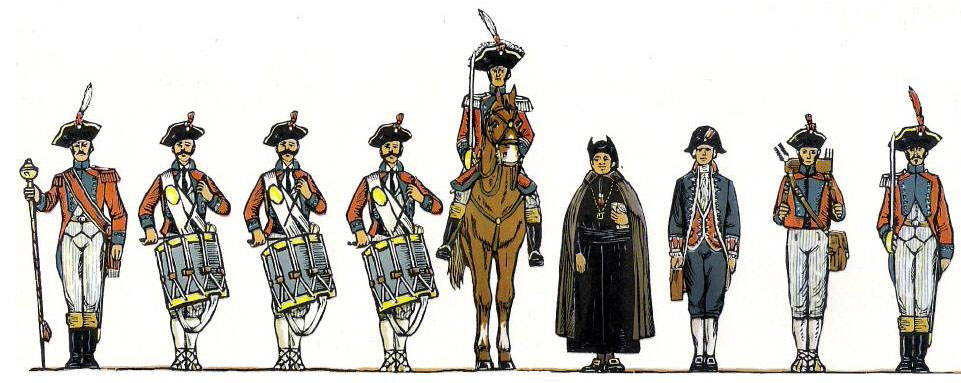 Les restes més antigues conegudes fins ara, dins el nucli urbà, és el castell de Pontós, dels segles XII-XIII, que va tenir una gran importància estratègica, com el veí de Creixell, en la frontera oriental del comtat de Besalú, davant del d'Empúries. Pertanyia als dominis dels senyors del castell de Creixell i formava part de la baronia del mateix nom. L’any 1209 apareix ja en possessió de Dalmau de Creixell. Es documenten personatges d’aquest llinatge i altres cognominats de Pontós, relacionats amb aquest lloc i castell durant els segles XIII i XIV. ![]() Batalló de Voluntaris d'Infanteria Lleugera de Girona, creat el mes de novembre de 1792. Dibuix de Joaquim Pla i Dalmau - (Ampliar) La batalla de Pontós. La monarquia espanyola havia declarat la guerra a la República Francesa el 17 d'abril de 1793 en resposta a l'execució de Lluís XVI de França i Maria Antonieta d'Àustria, conflicte bèl·lic anomenat Guerra Gran, que va durar de 1793 a 1795. L'exèrcit espanyol, sota el comandament del general Antonio Ricardos van entrar al Rosselló per Sant Llorenç de Cerdans, amb un exèrcit de 25.000 homes i un centenar de peces d'artilleria, i va ocupar les ciutats poc defensades d'el Pertús i la vall del riu Tec, Arles i Ceret. Després de la derrota de la batalla de Paretstortes (17 de setembre 1793), quan intentava conquerir Perpinyà defensat per Louis Charles de La Motte-Ango, es va retirar a les seves posicions inicials. Aquest enfrontament va marcar la fi de la progressió espanyola al Rosselló. ![]() Batalló de Voluntaris d'Infanteria Lleugera de Girona, creat el mes de novembre de 1792. Dibuix de Joaquim Pla i Dalmau - (Ampliar) Els francesos entraren finalment a Catalunya per Sant Llorenç de la Muga, on es produïren diversos combats, fins que es derrotaren les posicions espanyoles del 17 al 20 de novembre de 1794 en la Batalla del Roure, en la que varen morir els generals Dugommier i el Comte de la Unión, i els espanyols es desmoralitzaren i fugiren. Els francesos del general Dominique Catherine de Pérignon capturaren la ciutat de Figueres el 28 de novembre i Roses, que havia quedat aïllada, el 3 de febrer de l'any següent. ![]() Batalló de Voluntaris d'Infanteria Lleugera de Girona, creat el mes de novembre de 1792. Dibuix de Joaquim Pla i Dalmau - (Ampliar)