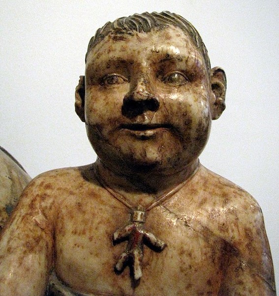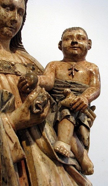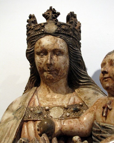 Mare de Déu, procedent de Pontós (detall). Alabastre policromat. Segle XV. Actualment al Museu d'Art de Girona - (Ampliar)
