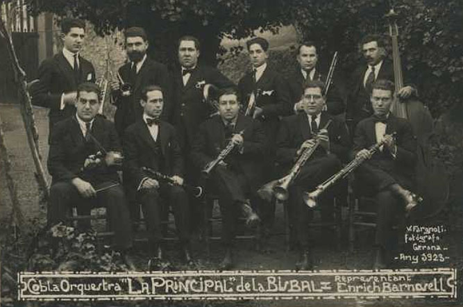 La Principal de la Bisbal en formació de cobla. 1923. Valentí Fargnoli i Annetta. Arxiu Comarcal de l'Alt Empordà - (Ampliar)