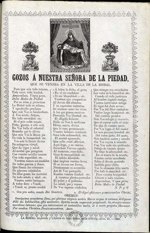 Gozos a Nuestra Señora de la Piedad, que se venera en la villa de La Bisbal. Segle XIX. Bibliothèque nationale de France - (Ampliar)