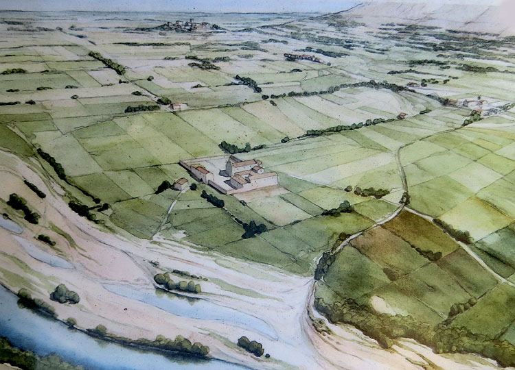 Amb la feudalització, a inicis del segle XI, la violència i els abusos per part dels senyors feudals sobre la pagesia eren habituals. Per tal de posar-hi fre, l'església va promoure el moviment de Pau i Treva de Déu, amb el qual es van establir un seguit de normes molt estrictes. Una de les mesures va ser la reinstauració de la sagrera, espai al voltant de l'església i cementiri al qual se li atorgava un caràcter sagrat i estava prohibit cometre-hi cap acte violent. En la majoria de llocs l'àrea sagrada s'establia en 30 passes al voltant del temples (1 passa = 1 metre), que es podia delimitar amb creus de fusta, amb un petit mur o amb un fossat. ![]() Recreació idealitzada del monestir canonical agustinià de Santa Maria d'Ullà i el seu entorn. Dibuix de Jordi Sagrera - (Ampliar)