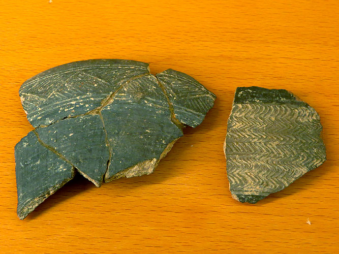 ![]() Fragments de vasos fets a mà, amb motius incisos, 600-450 aC |