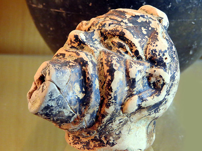 Llàntia plàstic en forma de cap de faune. Importació itàlica (finals del segle IV - primera meitat del segle III aC). |