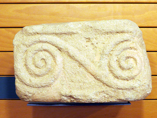 Carreu decorat amb motius espirals, trobat vora el temple 1. Segle III aC |