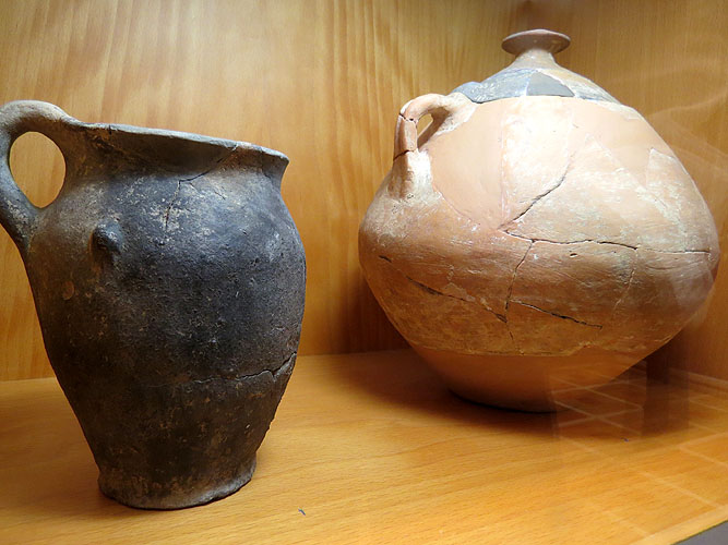 Esquerra: vas de perfil en S de ceràmica a mà decorada amb mugrons. Dreta: urna d'orelletes de ceràmica comuna ibèrica |