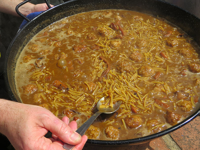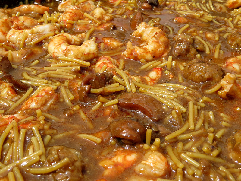 "Fideus a la cassola del senyoret". (Fideus mar i muntanya sense ossos ni espines, per analogia amb l'arròs del mateix nom).