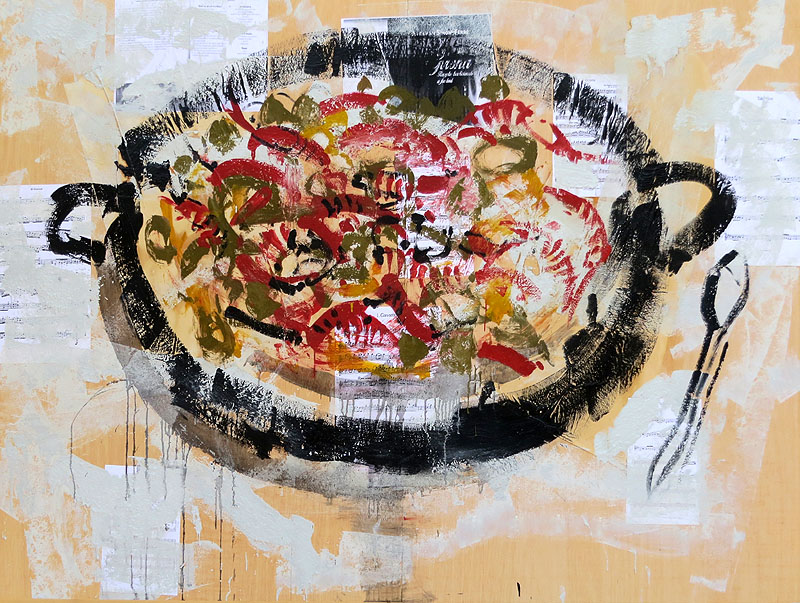 Durant l'acció pictòrica de Carles Bros, una al·legoria de la cassola, Abraham Simon, autor de "Cassoles de Girona", Marc Esteve, xef del restaurant El Port de la Cala de Lloret de Mar i el xef Joan Antoni Borràs, que va tenir una estrella Michelin per l'Hostal Sant Salvador de Vall de Bianya, varen cuinar unes cassoles de fideus mar i montanya, unes tripes de bacallà amb cigrons, un escabeix de verat i un suquet de sardines. Paral·lelament l'autor gastronòmic i crític d'art Jaume Fàbrega, va comentar el procés. La nota musical va nar a càrrec del duet Maytzo. Al finalitzar l'acció els assistents varen tastar les cassoles preparades.