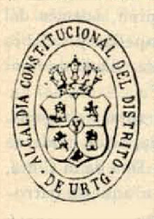 Escut d'Urtx publicat a "Geografia General de Catalunya", Joaquim Botet i Sisó, 1908.