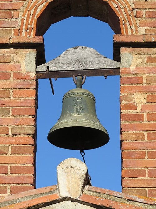 Campanar de l'ermita de Sant Sebastià. A la campana hi ha un relleu que representa el sant - (Ampliar)