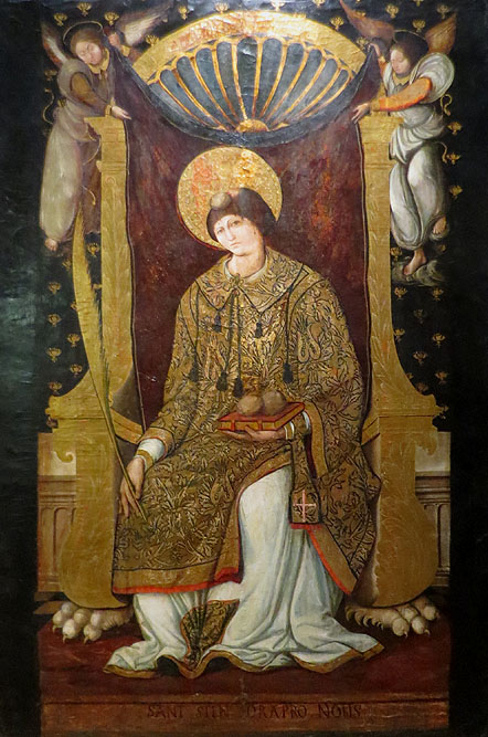Sant Esteve. Pere Gascó. Primera meitat segle XVI. Pintura sobre fusta. Priorat de Sant Joan les Fonts. Museu d'Art de Girona - (Ampliar)