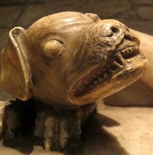 Homes amb el cap en comú estirant-se les barbes. Capitell de la capçalera del monestir - (Ampliar)