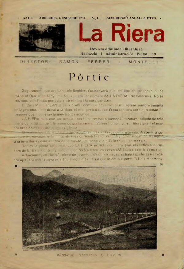 Premsa local. Revista d'humor i literatura 'La Riera'. Número 1. 1 de gener de 1934