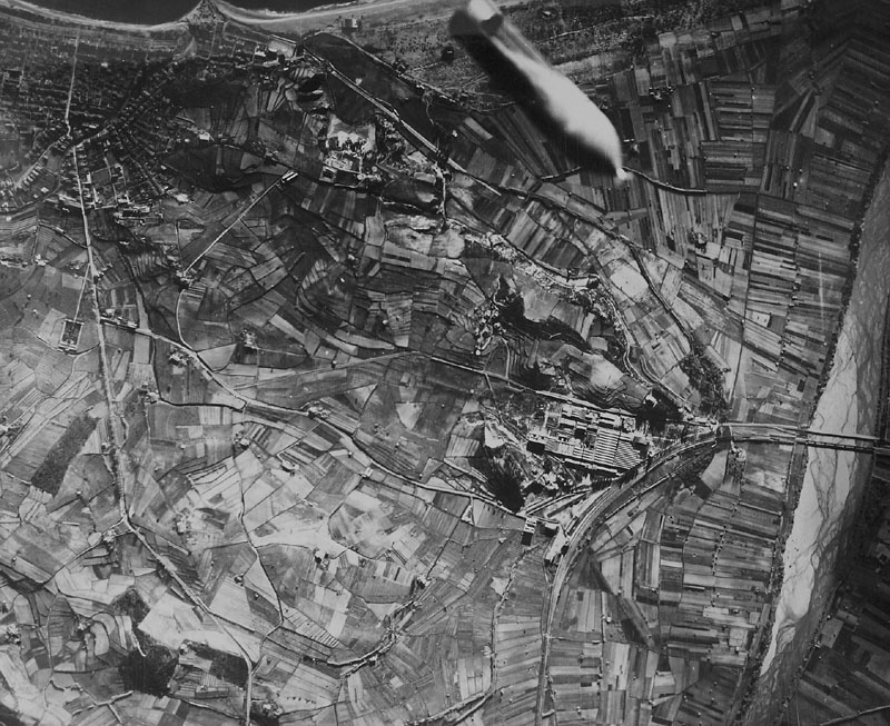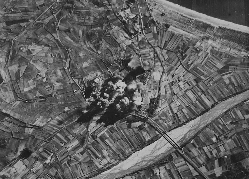 Bombardeig del 24 de gener de 1939, realitzat per avions Savoia S-79 de l'Aviazione Legionaria dell Baleari, sobre la fàbrica S.A.F.A de Blanes. Ufficio storico de l'Aeronautica Militare de Roma - (Ampliar)