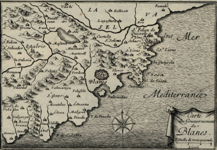 Carte du gouvernement de Blanes. Sieur de Beaulieu. 1668. Institut Cartogràfic i Geològic de Catalunya - (Ampliar)