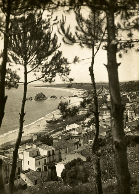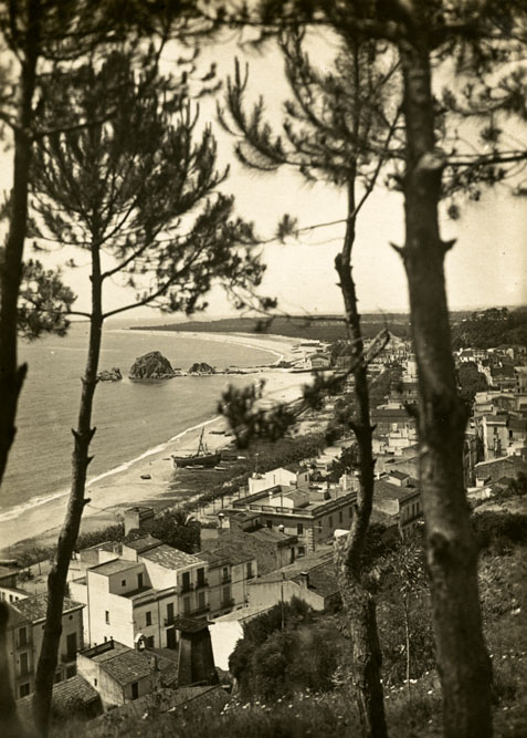 Vista del poble i la platja de Blanes des de les ruïnes del Castell de Sant Joan. 1918. Valentí Fargnoli i Annetta. CRDI - Ajuntament de Girona - (Ampliar)