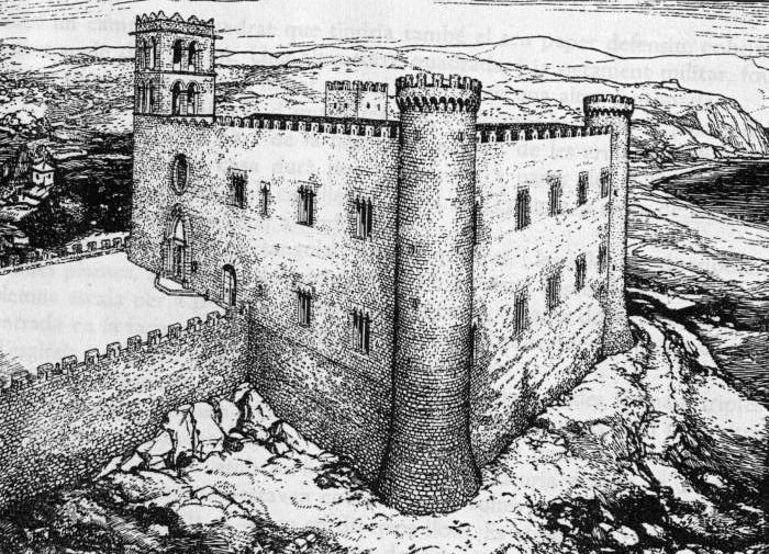 Recreació del palau-castell dels vescomtes de Cabrera. Segle XIV-XV. Dibuix d'Isidre Puig i Boada. Generalitat de catalunya - (Ampliar)