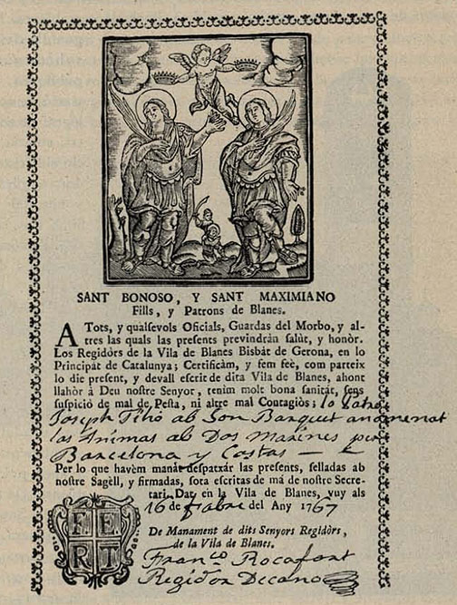Patent de sanitat. 1767. Publicat a "Geografia General de Catalunya", de Botet i Sisó, 1908-1918 - (Ampliar)
