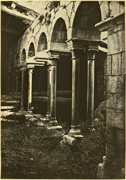 Claustre de Sant Salvador de Breda. Imatge d'Heribert Mariezcurrena, de 1878. Viquipèdia - (Ampliar)