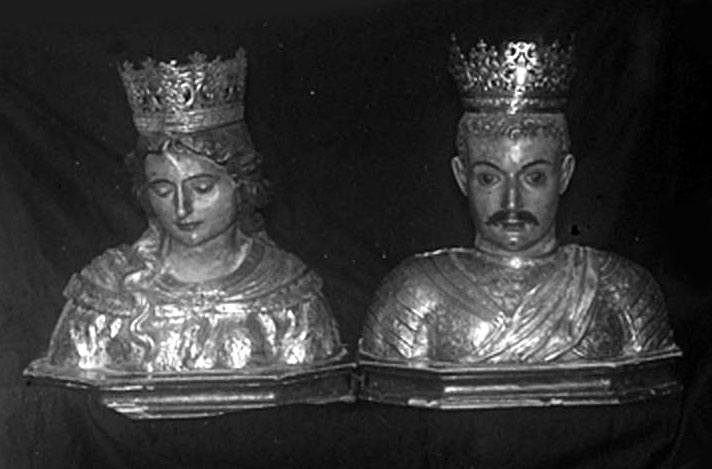 L'impuls definitiu de Breda vindria donat pels esposos Guerau I de Cabrera i Ermessenda de Montsoriu, vescomtes de Girona, quan fundaren un monestir benedictí en aquesta vila, dedicat a Sant Salvador, un dels més importants dels que van existir en les comarques gironines, fundat el 4 de juny de l'any 1038, i el dotaren econòmicament per tal de garantir el manteniment de la seva activitat (2). El primer abat va ser Sunyer (1038-1067), que va començar la construcció de la seva església consagrada el 1068 (3). ![]() Busts reliquiaris dels sants Iscle i Victòria a Sant Salvador de Breda, 1922. Fotografia de Josep Salvany (1866-1929), ca. 1920. Biblioteca de Catalunya. Viquipèdia. - (Ampliar)