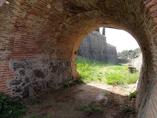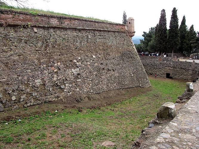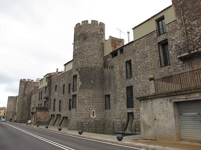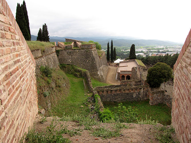 El 1455 s'hi varen tornar a fer obres. Durant la Guerra civil catalana contra Joan II el castell va patir nombrosos atacs en prendre part contra el rei fent costat als pagesos remences i als diputats de la Generalitat. Després del setge d'Hostalric del 1462, va ser ocupat per les hosts del Consell del Principat que es dirigia a Girona (2). En temps de la Guerra dels Segadors el castell esdevingué una plaça forta. ![]() Fossats i baluards del castell. - (Ampliar)