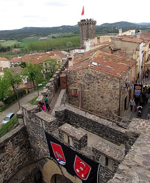 El castell d'Hostalric esdevingué la seu administrativa dels vescomtes de Cabrera i, juntament amb el castell de Montsoriu, un dels principals bastions d'aquesta família. S'hi establí la cúria, la notaria, un mercat (1327) i una petita comunitat jueva (1) per als afers econòmics. L'any 1285, Pere el Gran en va fer el seu quarter general per lluitar contra el rei francès Felip III l'Ardit que havia envaït el Principat. ![]() Panoràmica d'Hostalric des del castell. - (Ampliar)