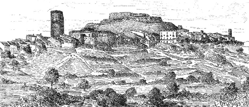 A l'est de la vila destaca la torre dels Frares que controlava la part baixa del turó, molt lluny del castell. Devia tenir una alçada de 30 metres, un diàmetre exterior d'uns 13 i un gruix de mur de 3,5. Tres pisos coberts amb volta i accés per la segona planta des del pas de ronda que envoltava tota la muralla. La torre dels Frares rep el nom pel convent de Sant Francesc, actualment casa de la vila, que s'hi construí al costat.