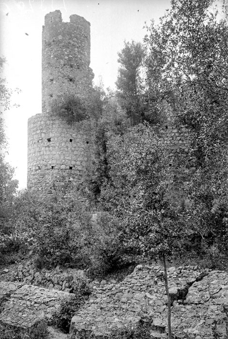 Restes de la torre del castell de Sant Iscle de Vidreres. 1911. Valentí Fargnoli i Annetta. CRDI - Ajuntament de Girona - (Ampliar)