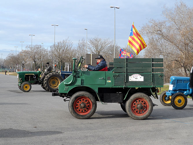 Sortida del pavelló de Fontajau de Girona de la passejada de tractors antics. Imatge: Rocío Fernández.