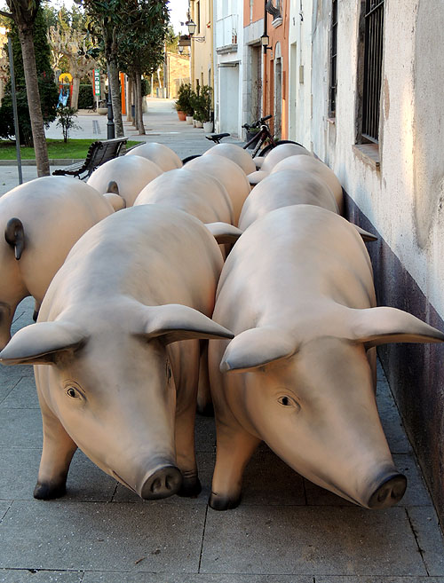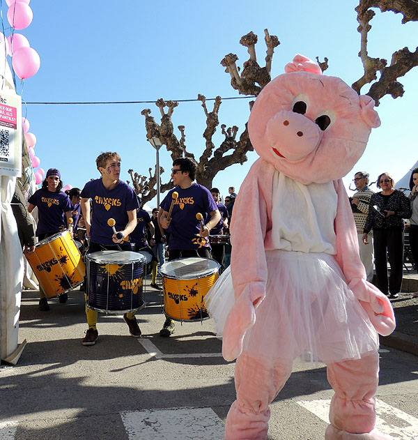 La tercera edició de la fira temàtica en torn del món del porc FIPORC fira es celebra els dies 20 i 21 de febrer 2016 en el nucli del municipi. A través dels diversos espais del poble es posa en relleu tot el cicle de vida del bestiar porcí. Des de l’animal viu que es pot visitar a l’exposició d’animals vius situada a la Plaça de l’Ajuntament, fins arribar a la pròpia degustació de totes les parts de l’animal i dels productes que se’n deriven en una àrea de tast a l’aire lliure. Cercavila del grup Taxeks, de Celrà - (Ampliar)