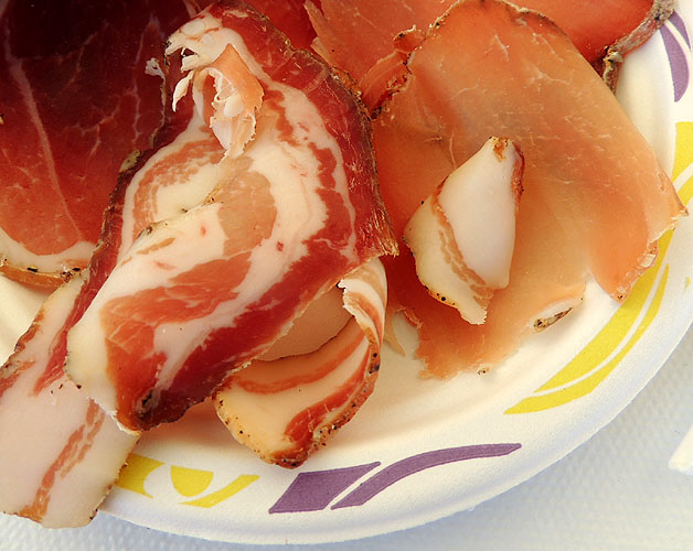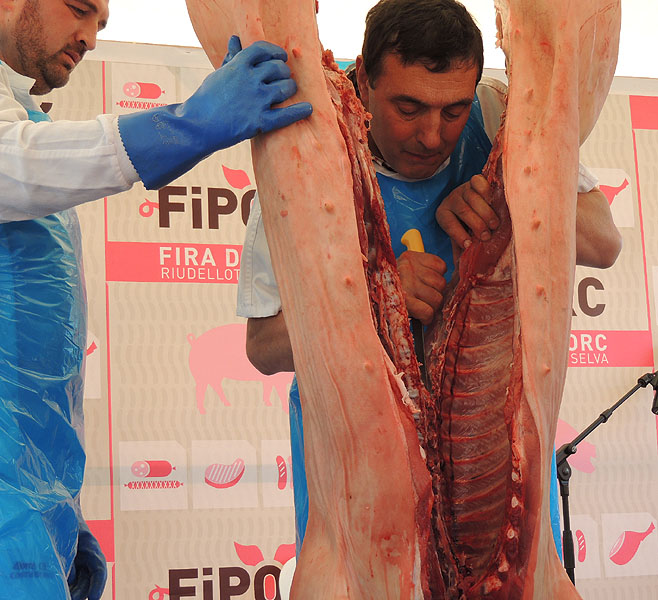 Actualment que es troben tot tipus d’aliments a totes les èpoques de l’any, cal fer un esforç per comprendre la importància de la matança en el passat, quan la carn provinent de la matança era en moltes ocasions l’única carn que es menjava en moltes llars rurals. [Galeries d'imatges] ------Reportatge fotogràfic i article de la presentació al Vol Espai Gastronòmic Girona. ------Reportatge fotogràfic i articles de la primera edició de la fira. ------Reportatge fotogràfic de la granja de porcs de Can Mercader. ------Reportatge fotogràfic de l'especejament d'un porc i preparació de peces. (Imatges base capçalera: Viquipèdia) |