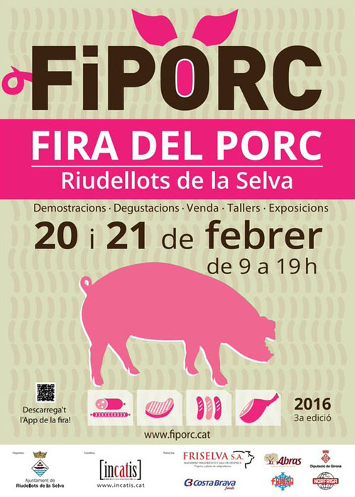 Riudellots de la Selva Fira del Porc FIPORC 2016 Riudellots de la Selva es situa al mapa europeu com el segon municipi d’Europa on hi passen més porcs el dia. Un total de 25.000 porcs diaris arriben a Riudellots per ser sacrificats i transformats amb diversos productes alimentaris. ![]() Inauguració oficial de la Fira del Porc FIPORC 2016 - (Ampliar)