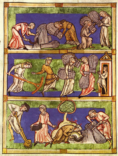 Tasques agrícoles segons una miniatura medieval. Viquipèdia - (Ampliar)