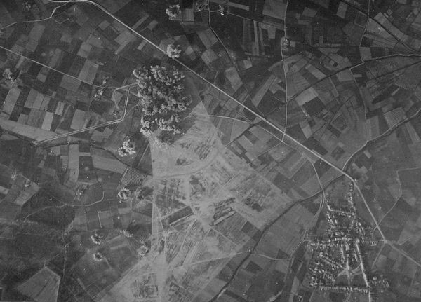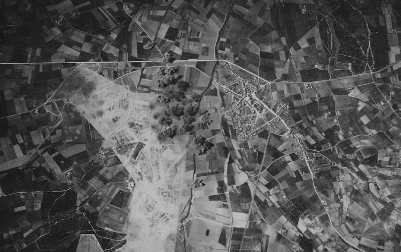 El 1938 es van construir els dos refugis antiaeris al mig del poble, un a les places i l'altre al camp de l'Artau. El refugi de les places es va començar perforant la plaça de l'Església i la plaça Lluís Companys en direcció del carrer Pompeu Fabra creant un túnel per tal d'ajuntar les dos places subterràniament, però mai es va arribar a aconseguir. Aquest refugi no va ser mai utilitzat, ja que hi va entrar aigua i no s'hi podia treballar. ![]() Bombardeig sobre l'aeròdrom de Vidreres. 14 d'abril de 1938. Ufficio storico de l'Aeronautica Militare de Roma - (Ampliar) El franquisme i els refugiats.