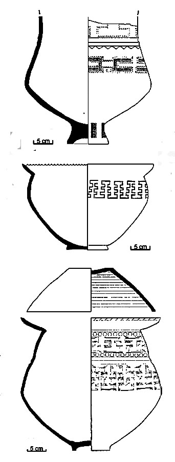 Dibuix d'una urna cinerària d'enterrament (E28), decorada amb la tècnica de la incisió de traç múltiple (1) - (Ampliar)