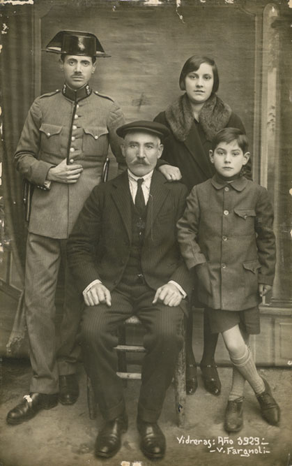 Retrat del guàrdia civil Ricardo Rey i la seva esposa Ramona Quintana amb un home i un nen no identificats. 1929. Valentí Fargnoli i Annetta. CRDI - Ajuntament de Girona - (Ampliar)