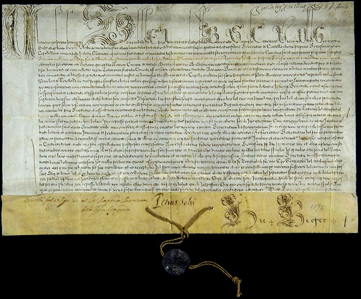 Els senyors van augmentar les pressions sobre els pagesos de remença que quedaven per evitar que disminuïsin els seus ingressos, pagesos sotmesos a la servitud de la gleva de no poder abandonar el mas i les terres que treballaven, sense haver-se redimit per part del seu senyor. Vidreres, en el segle XV, era una de les 23 poblacions del principat amb més de 40 focs o cases remences. Tota aquesta tensió esclatà en el segle XV amb les dues guerres Remences i, durant la segona guerra (1484-1486), els remences van ocupar el castell de Sant Iscle, que va ser tornat un cop acabada la guerra. El conflicte acabà amb la sentència arbitral de Guadalupe el 21 d'abril de 1486, dictada pel rei Ferran II d'Aragó. En les negociacions va participar el veí de Vilobí d'Onyar, Pere Antoni, síndic dels remences. ![]() Butlla de Climent VIII a Benet Sampsó, canonge de Vic, sobre el benefici de Sant Miquel de Vidreres. 1596. Biblioteca de Catalunya - (Ampliar) Les guerres dels segles XVII i XVIII.
